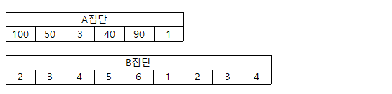 예를 들어 아래 표와 같은 측정값을 가진 두 집단이 있다고 가정합니다