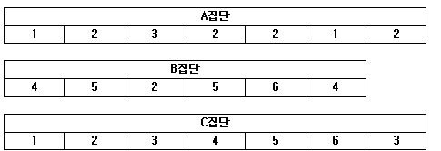 예를 들어 아래 표와 같이 3개 집단에 대한 자료가 있다고 할 경우