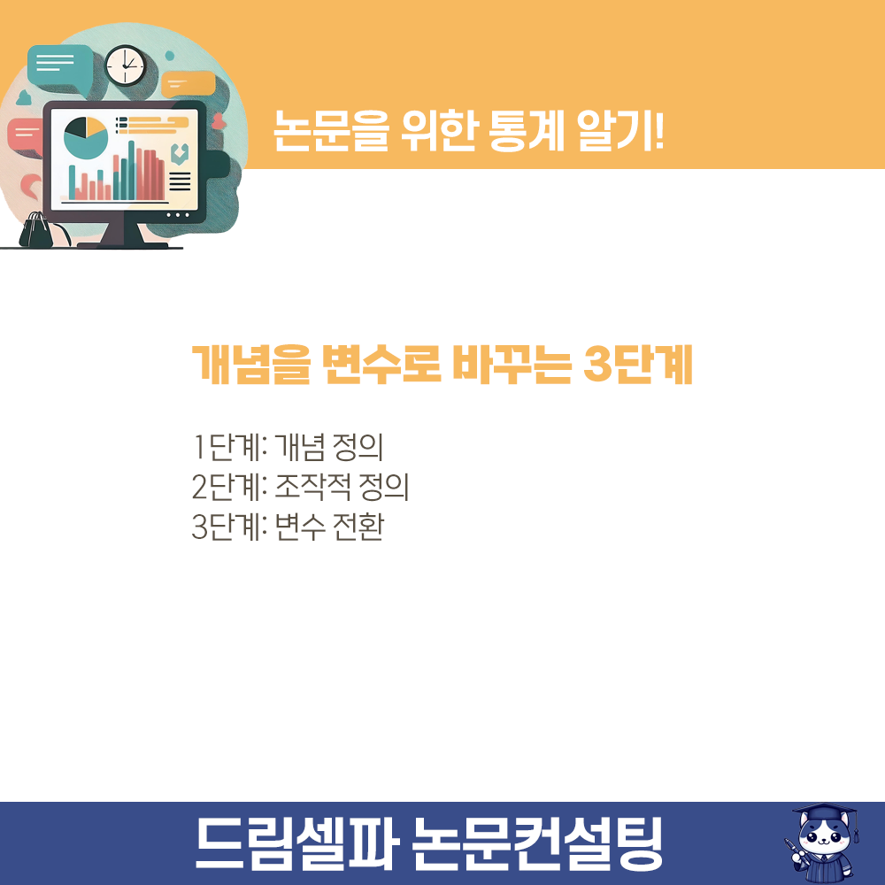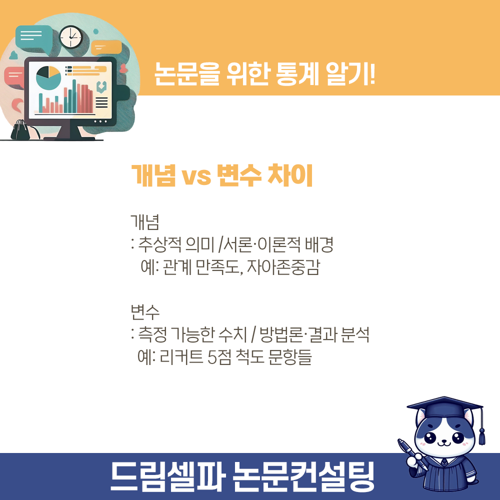‘개념’과 ‘변수’의 차이, 그리고 이론적 개념을 실제 변수로 바꾸는 방법을 쉽게 설명드릴게요.