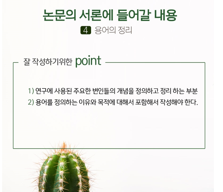 마지막으로 서론에서 용어를 정리하는 내용을 넣으시기도 하는데요