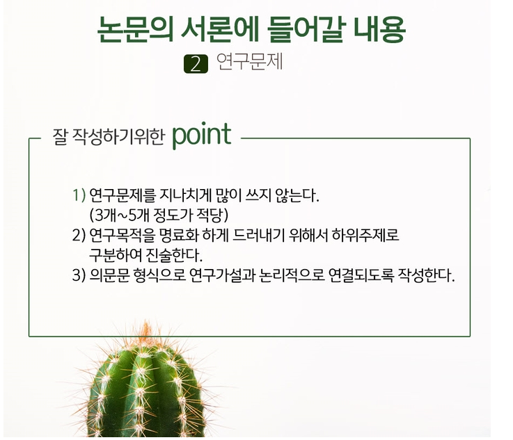 또 연구문제는 의문문 형식으로 작성해주시는 것도 잊지마세요!