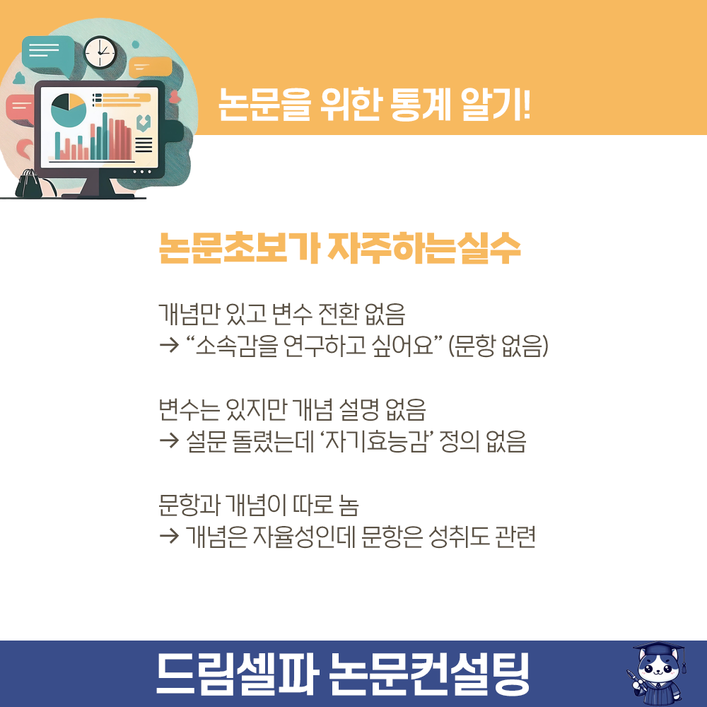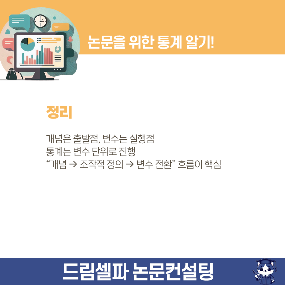 이 과정을 잘 해내야 통계 분석이 가능해지고, 논문 설계도 탄탄해집니다.