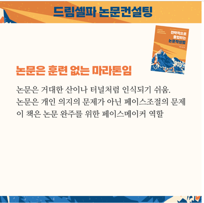 드림셀파 논문컨설팅은 여러분의 전략적 완주를 응원합니다.
